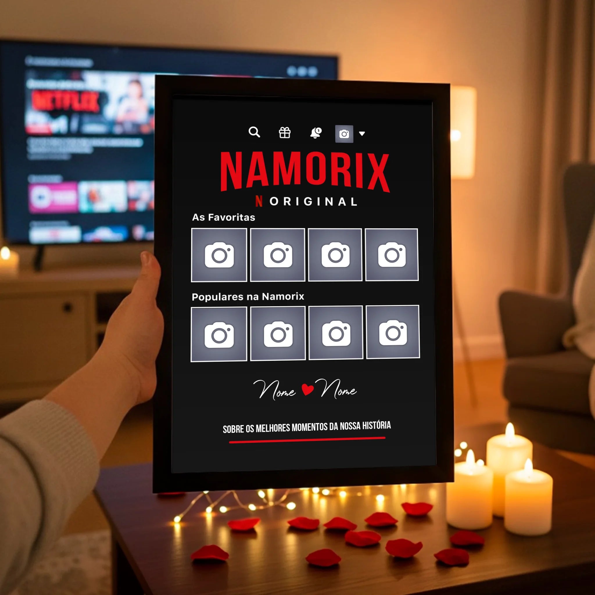 🖼️ Ideal para quem busca presentes românticos e personalizados para datas especiais como aniversários, Dia dos Namorados, pedidos de namoro ou casamentos.