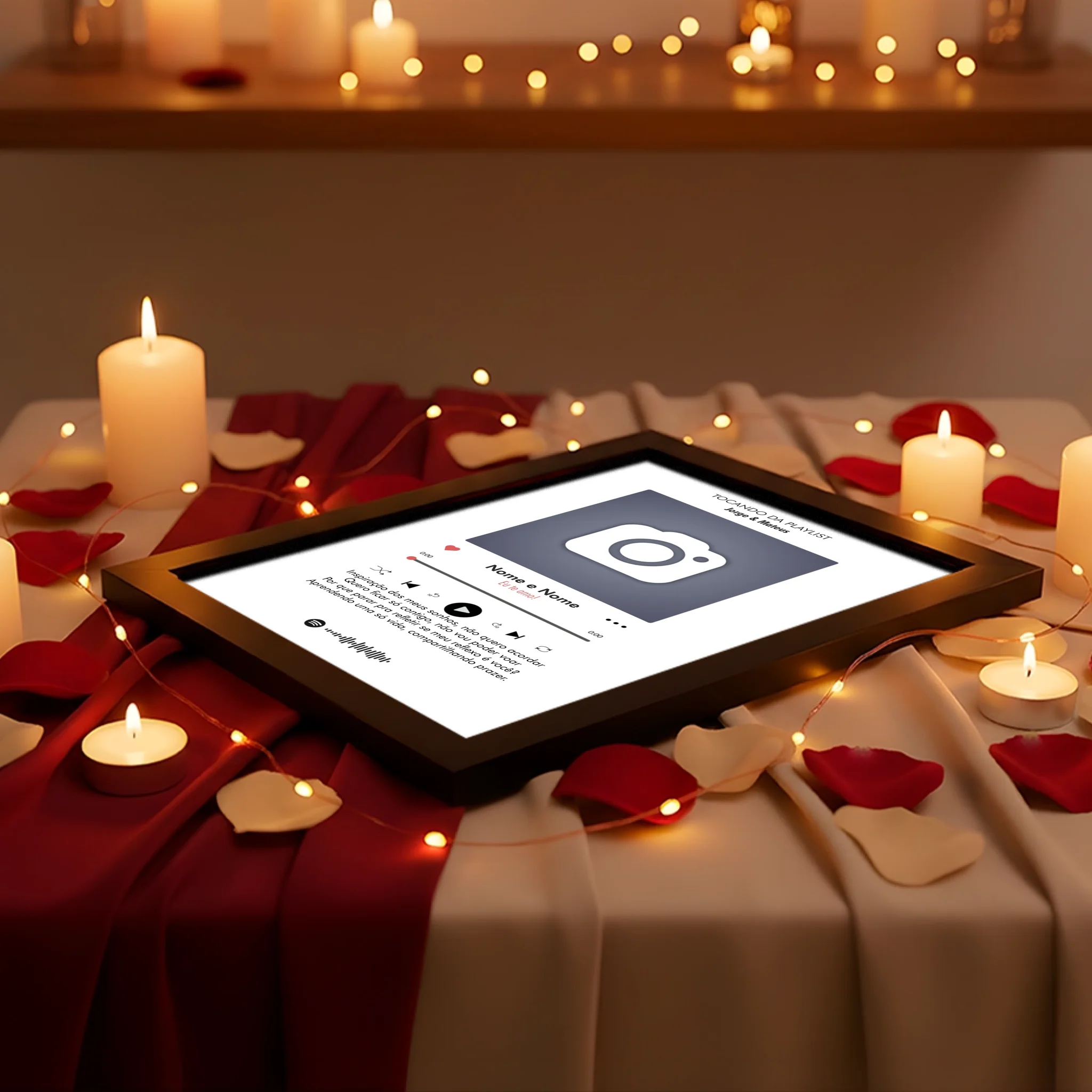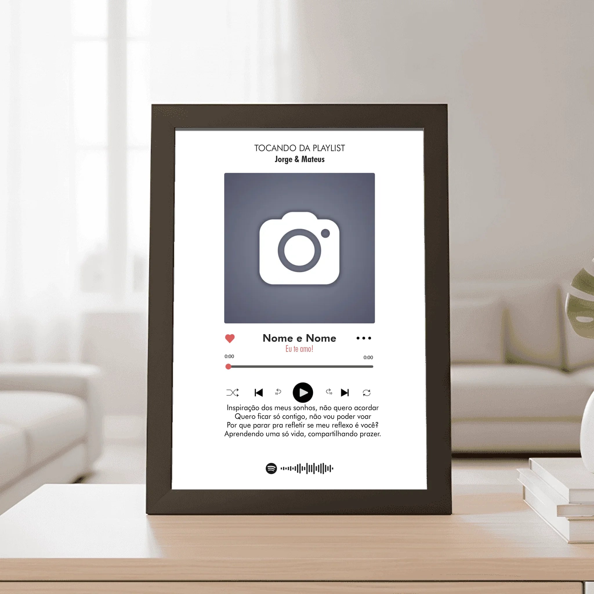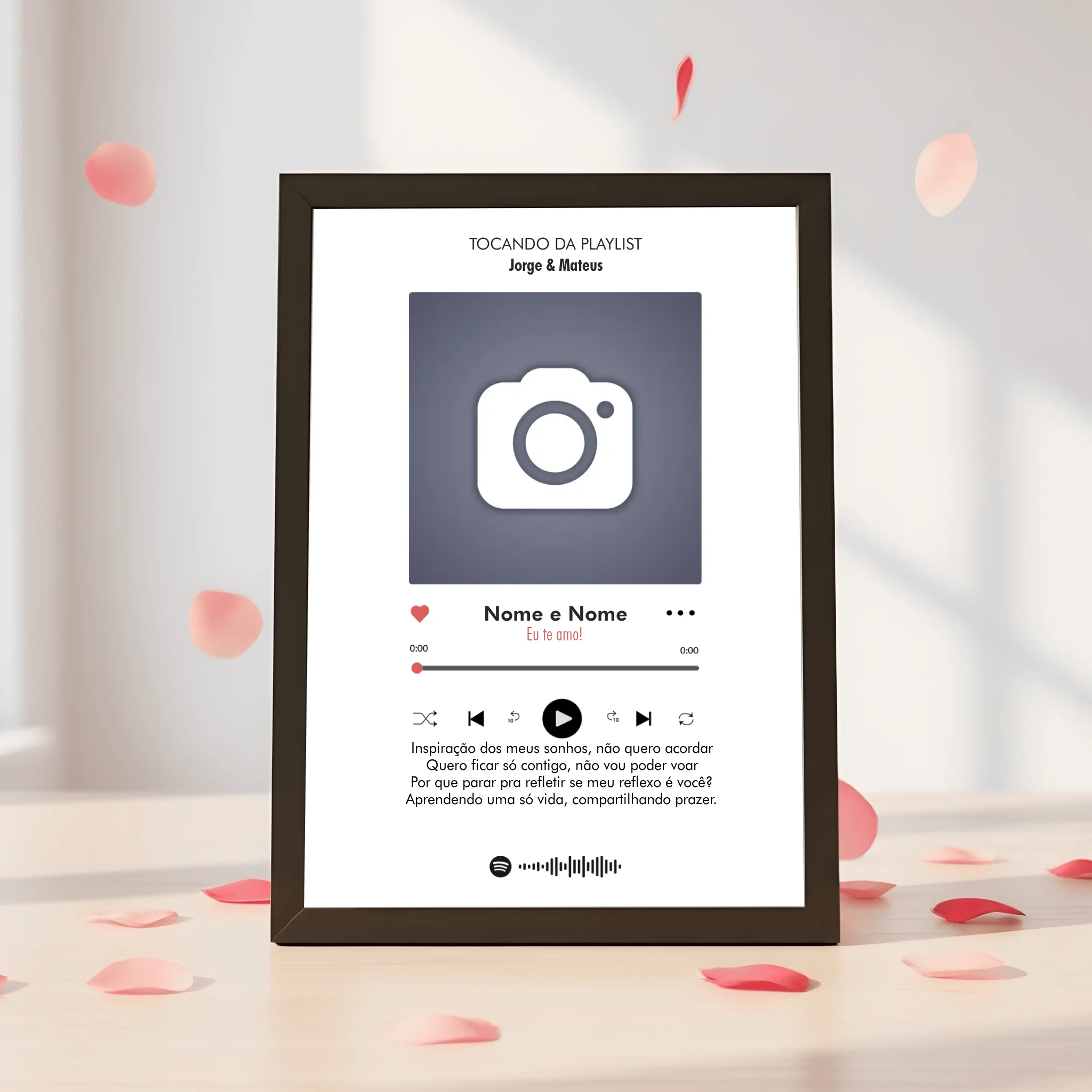 📻 Personalize com a canção que marcou a história de vocês, inclua a capa do álbum, os nomes e um código Spotify escaneável para reviver cada momento sempre que quiser. Imagine a surpresa e a emoção ao ver o amor de vocês transformado em arte! 💖🎶