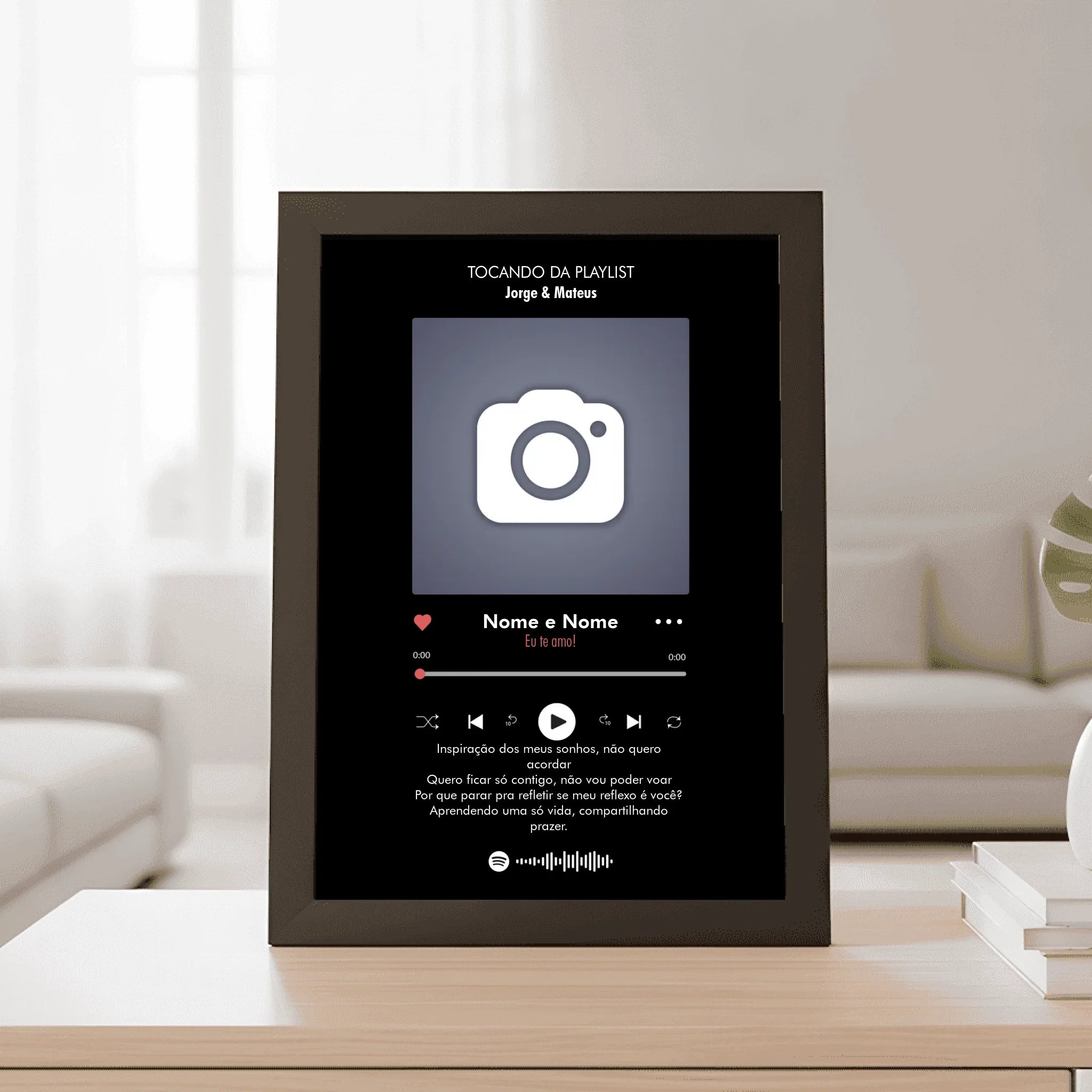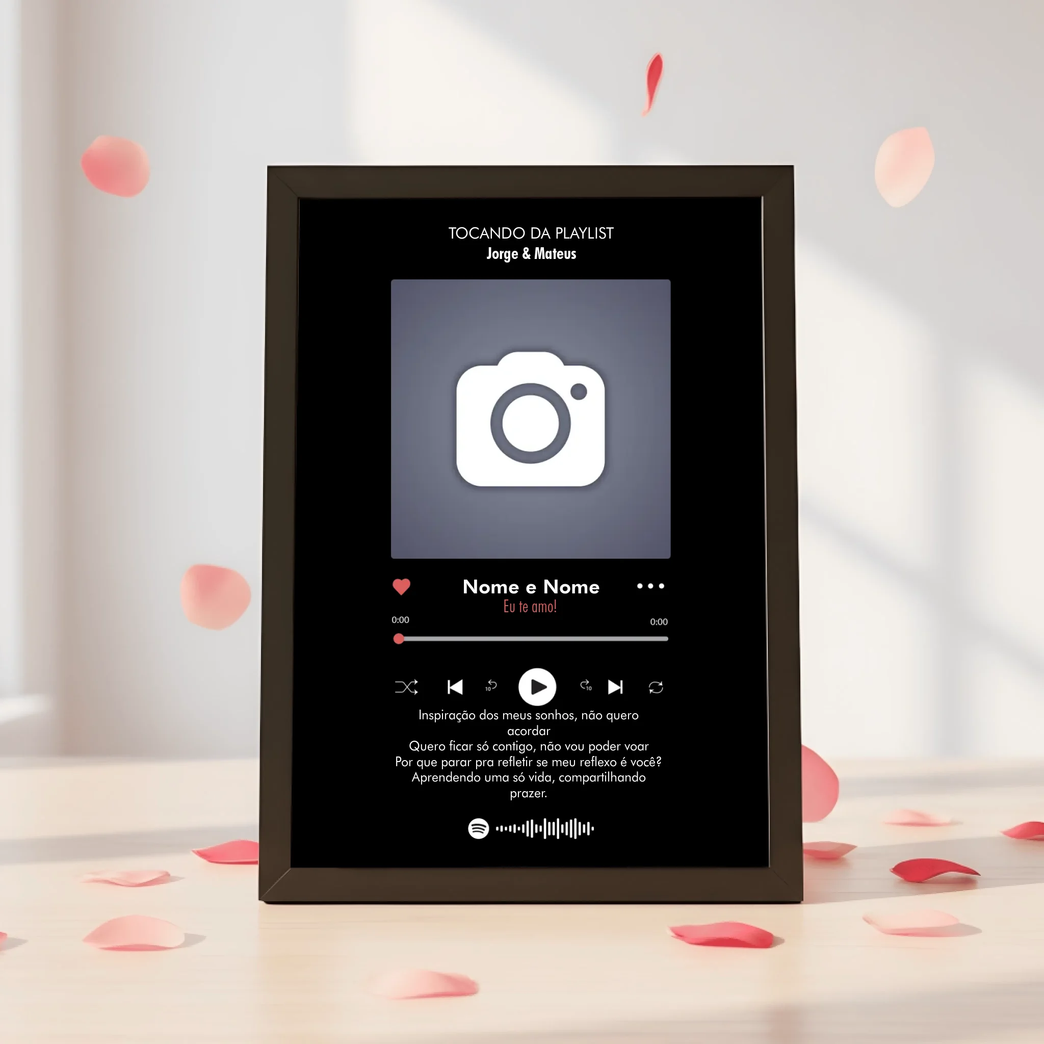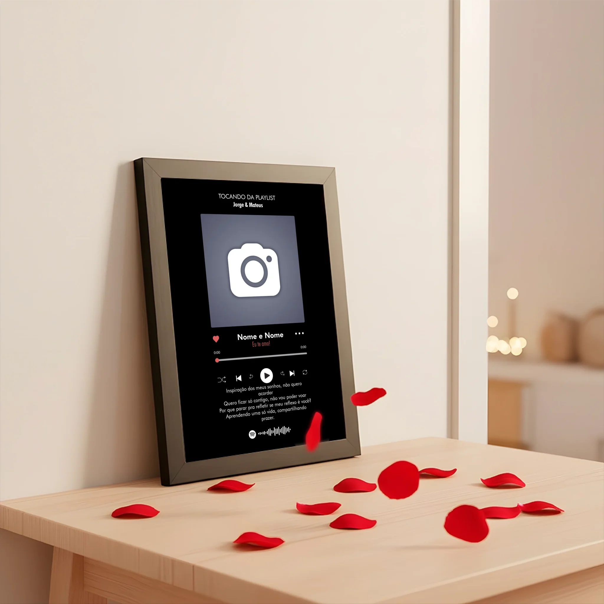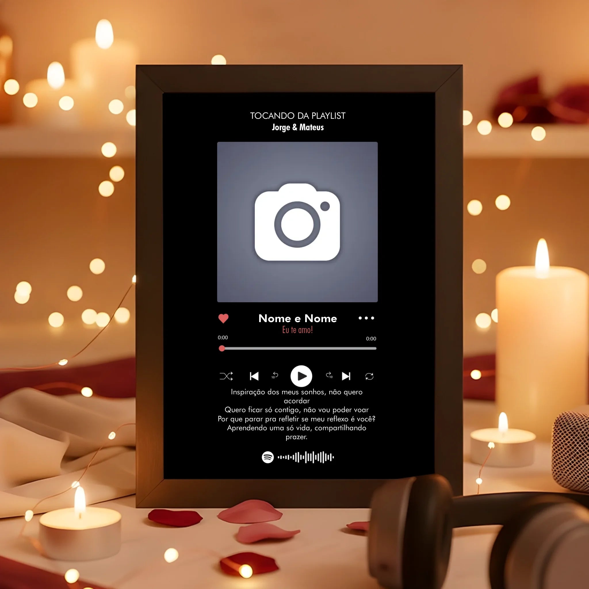 📻 Personalize com a canção que marcou a história de vocês, inclua a capa do álbum, os nomes e um código Spotify escaneável para reviver cada momento sempre que quiser. Imagine a surpresa e a emoção ao ver o amor de vocês transformado em arte! 💖🎶