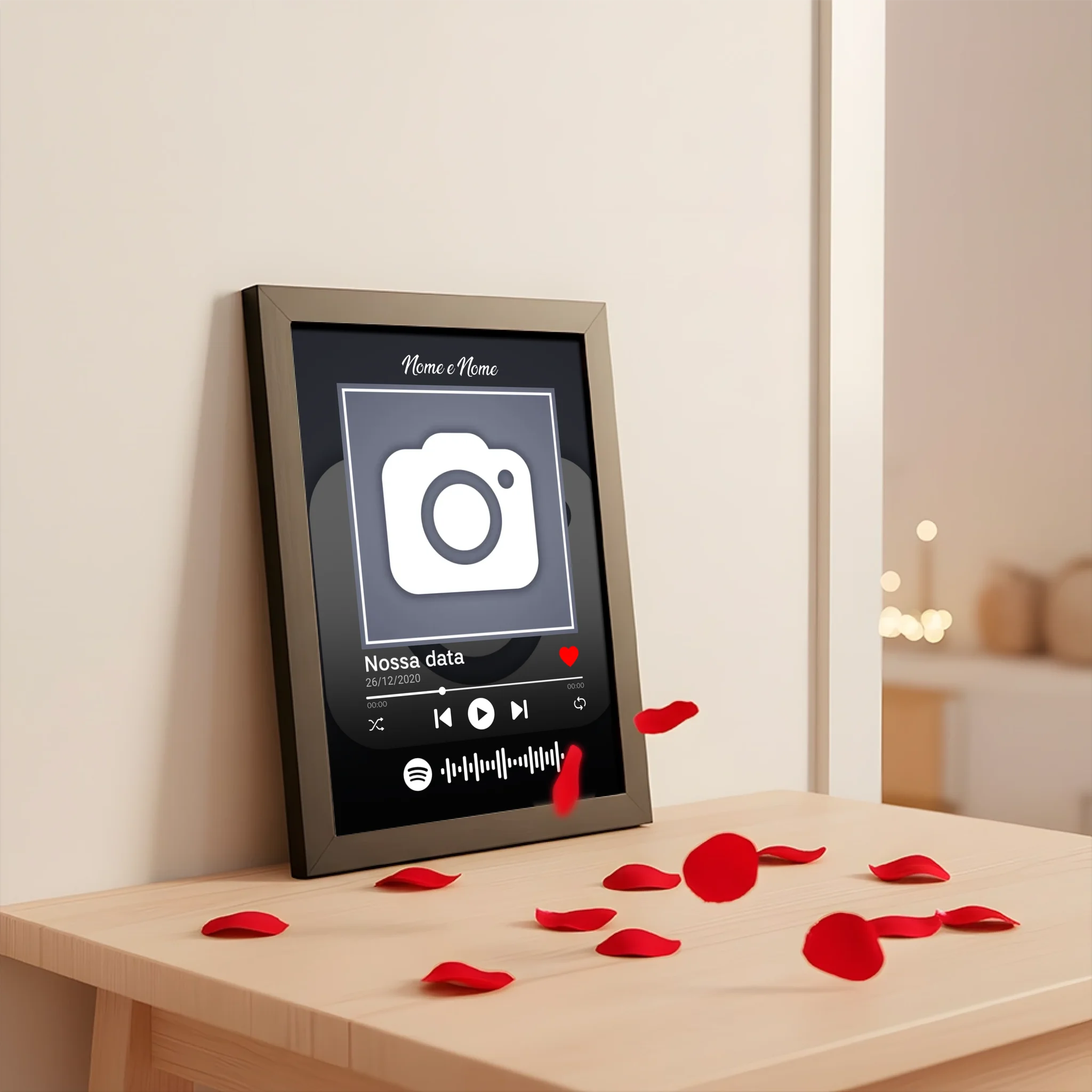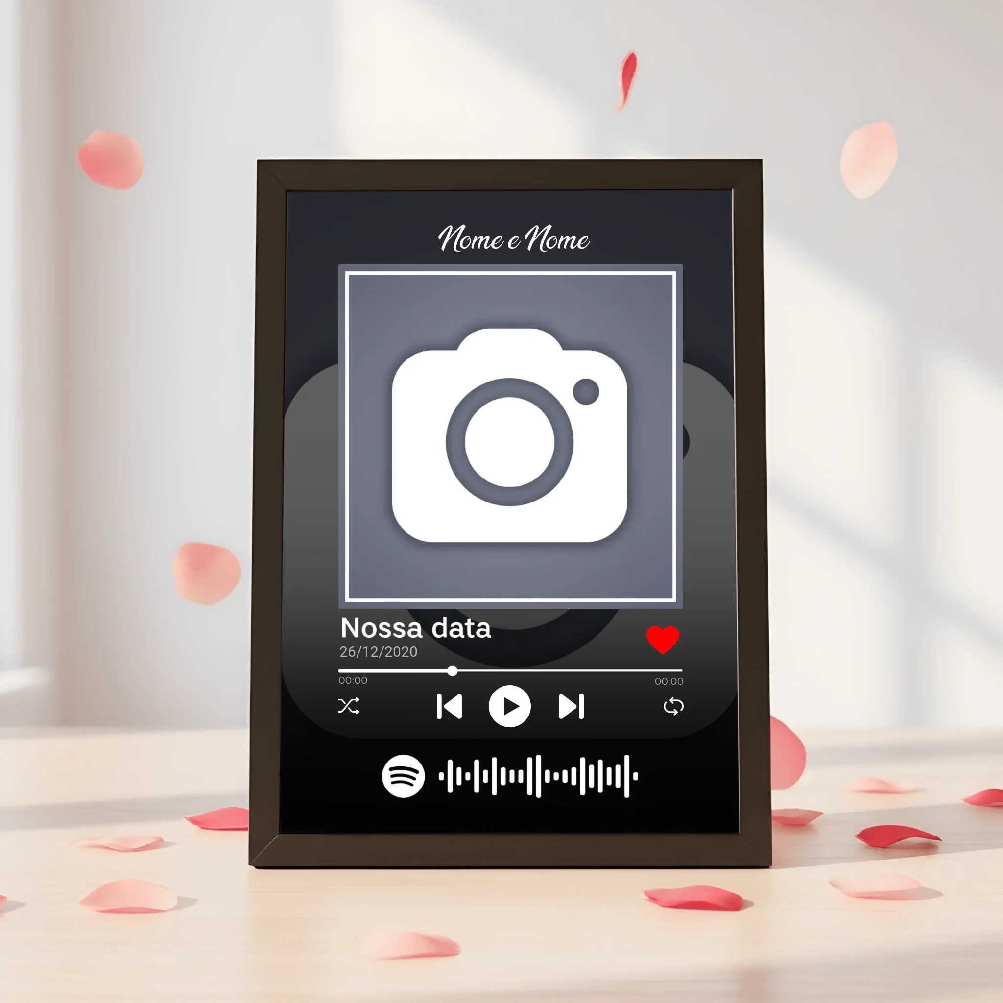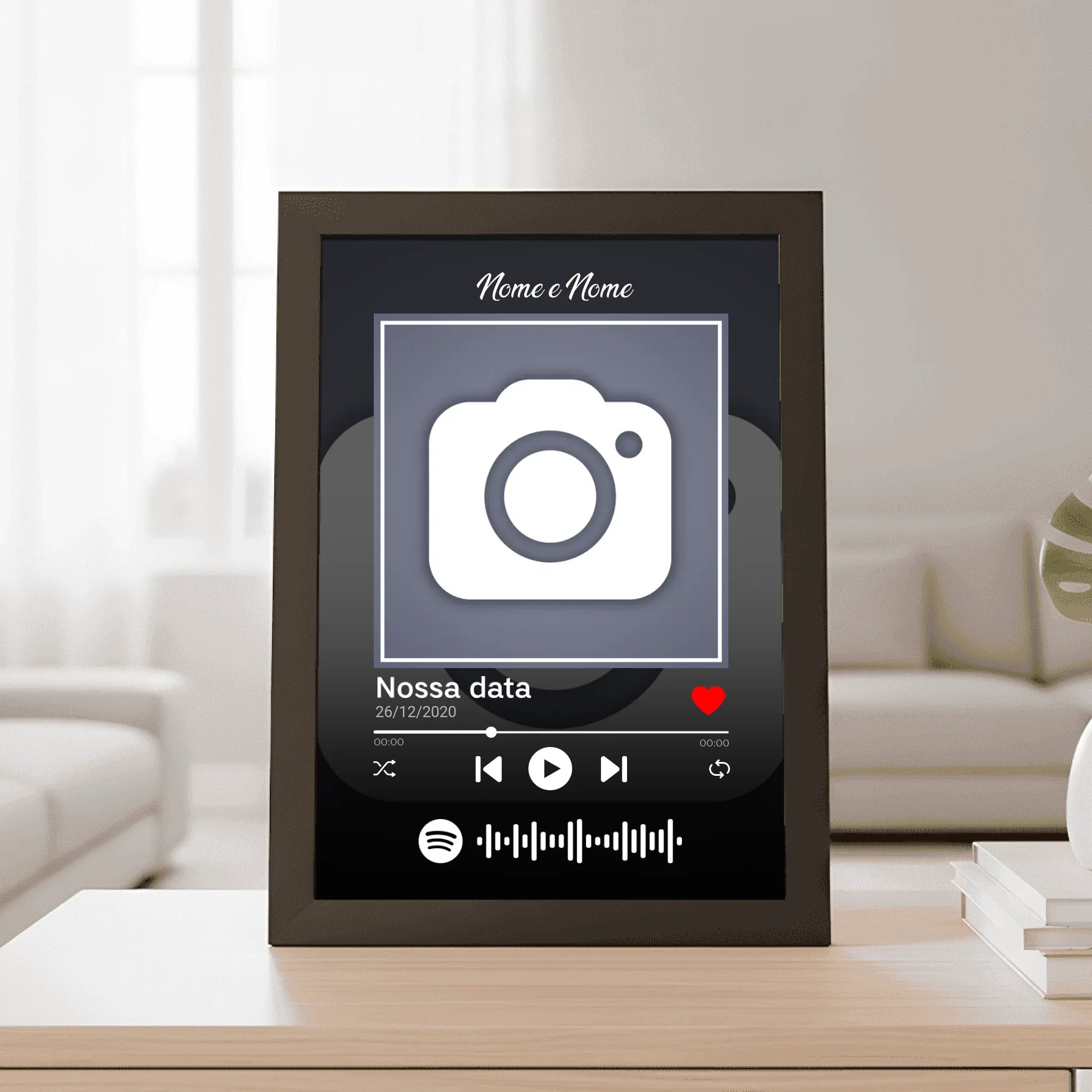 📻 Personalize com a canção que marcou a história de vocês, inclua a capa do álbum, os nomes e um código Spotify escaneável para reviver cada momento sempre que quiser. Imagine a surpresa e a emoção ao ver o amor de vocês transformado em arte! 💖🎶